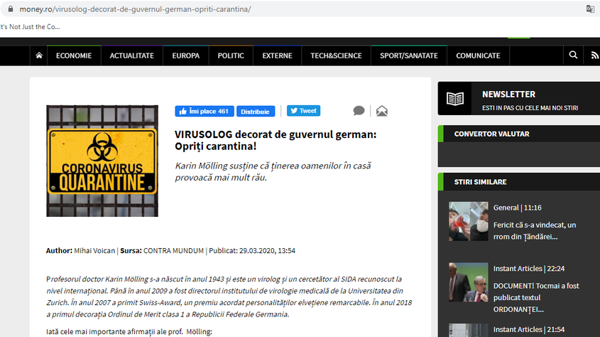 Într-un final, pe 3 martie, este preluat de site-ul PRO TV, cu titlul: Opinia controversată a unui virusolog german: Protejați doar bătrânii, tinerii trebuie lăsați să se infecteze unii pe alții.