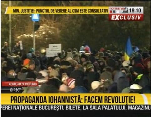 La RTV, unul dintre invitații emisiunii de la ora 19 era de părere că președintele Iohannis „asmute o parte a populației împotriva alteia”. Între timp, producătorii titrau pe burtieră că instituții-cheie ale statului sunt puse sub pază și că tehnocrații vor să ia puterea „prin forță, nu prin vot”.