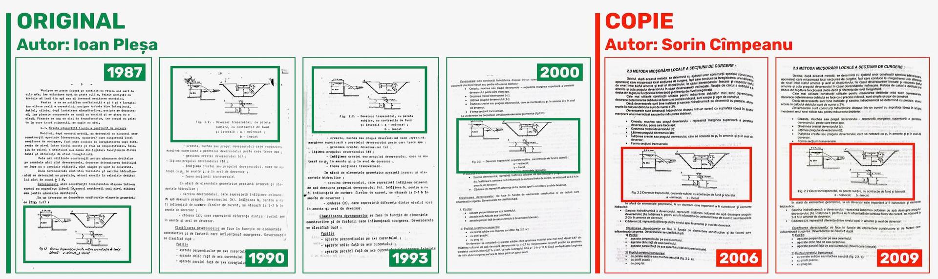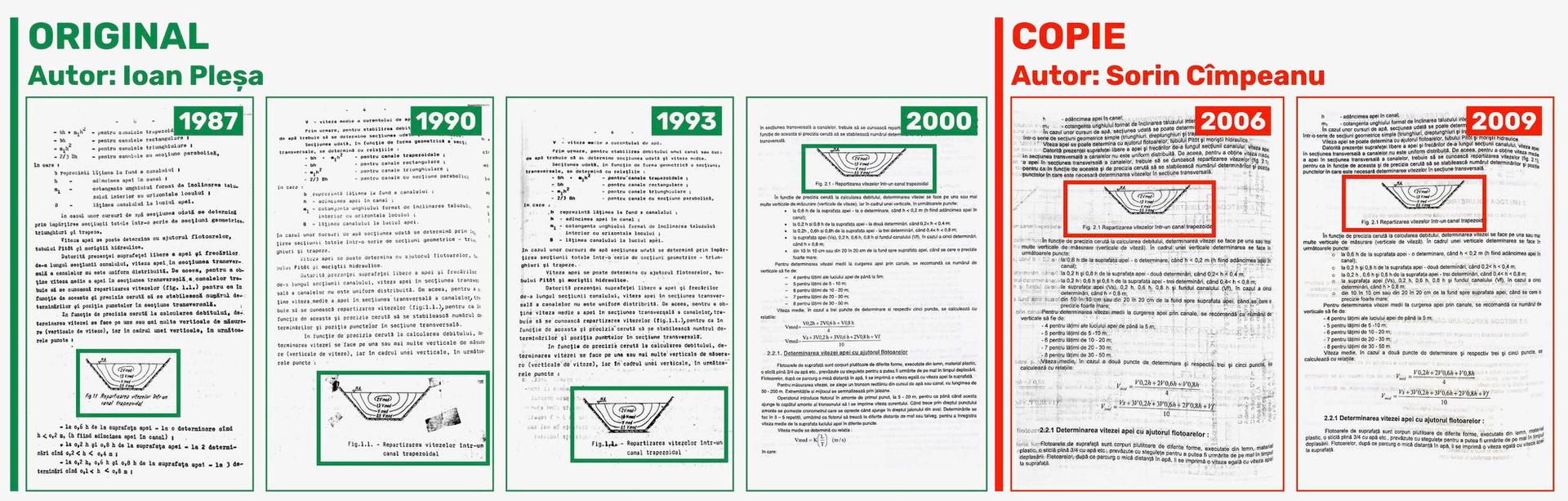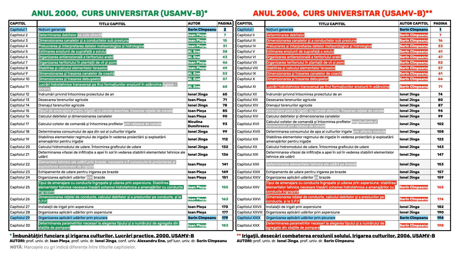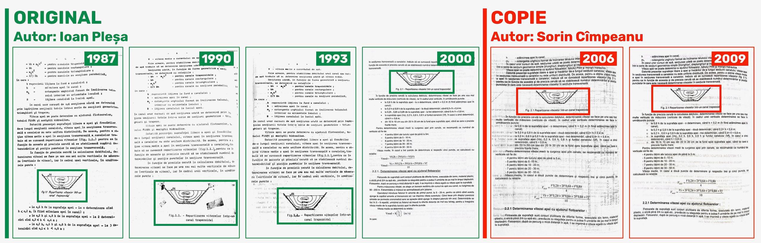 Un simplu exemplu: în lucrarea din 2000, Capitolul 2 „Determinarea debitelor pe cale directă” apare semnat de Ioan Pleșa, iar în ediția din 2006, același Capitol 2, cu același titlu, este semnat de Sorin Cîmpeanu.