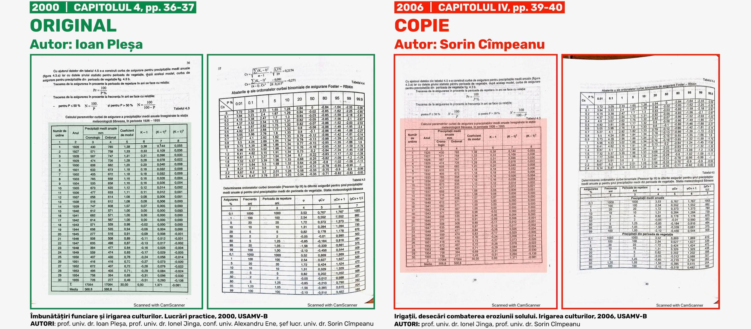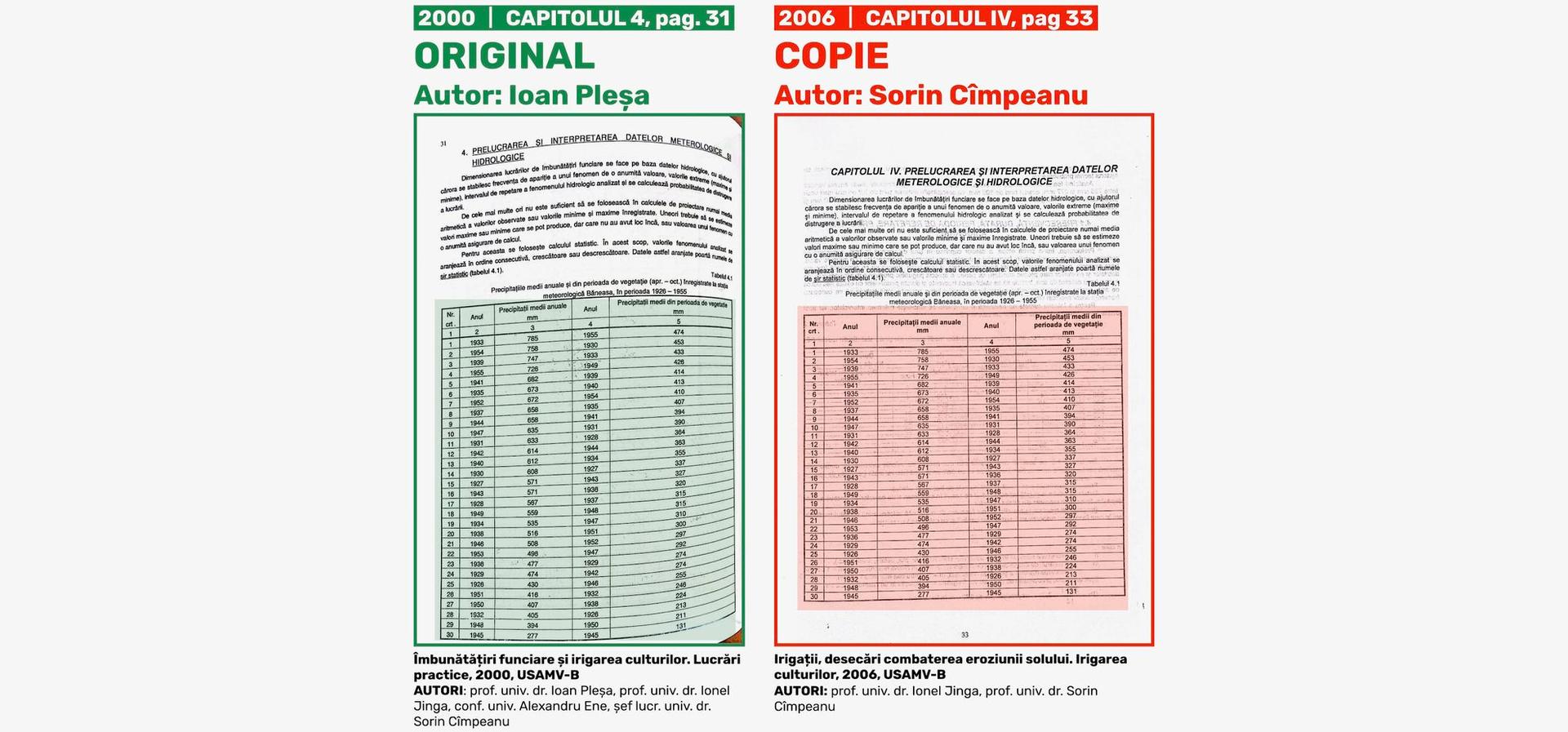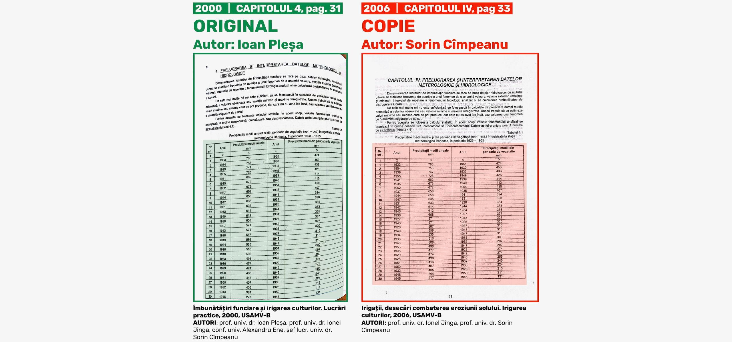 De asemenea, nu știm nici dacă Ioan Pleșa și Alexandru Ene mai lucrau la USAMV-B în anul 2006, când Sorin Cîmpeanu și Ionel Jinga au plagiat și și-au însușit capitolele semnate anterior, în patru ediții diferite - 1987, 1990, 1993 și 2000 - de aceștia. Alexandra Cornea, purtătoarea de cuvânt a USAMV-B, nu ne-a oferit această informație, deși i-am solicitat-o în urmă cu două săptămâni.