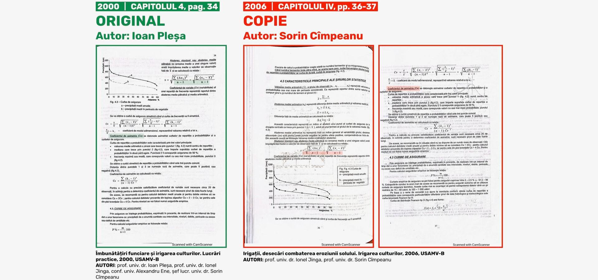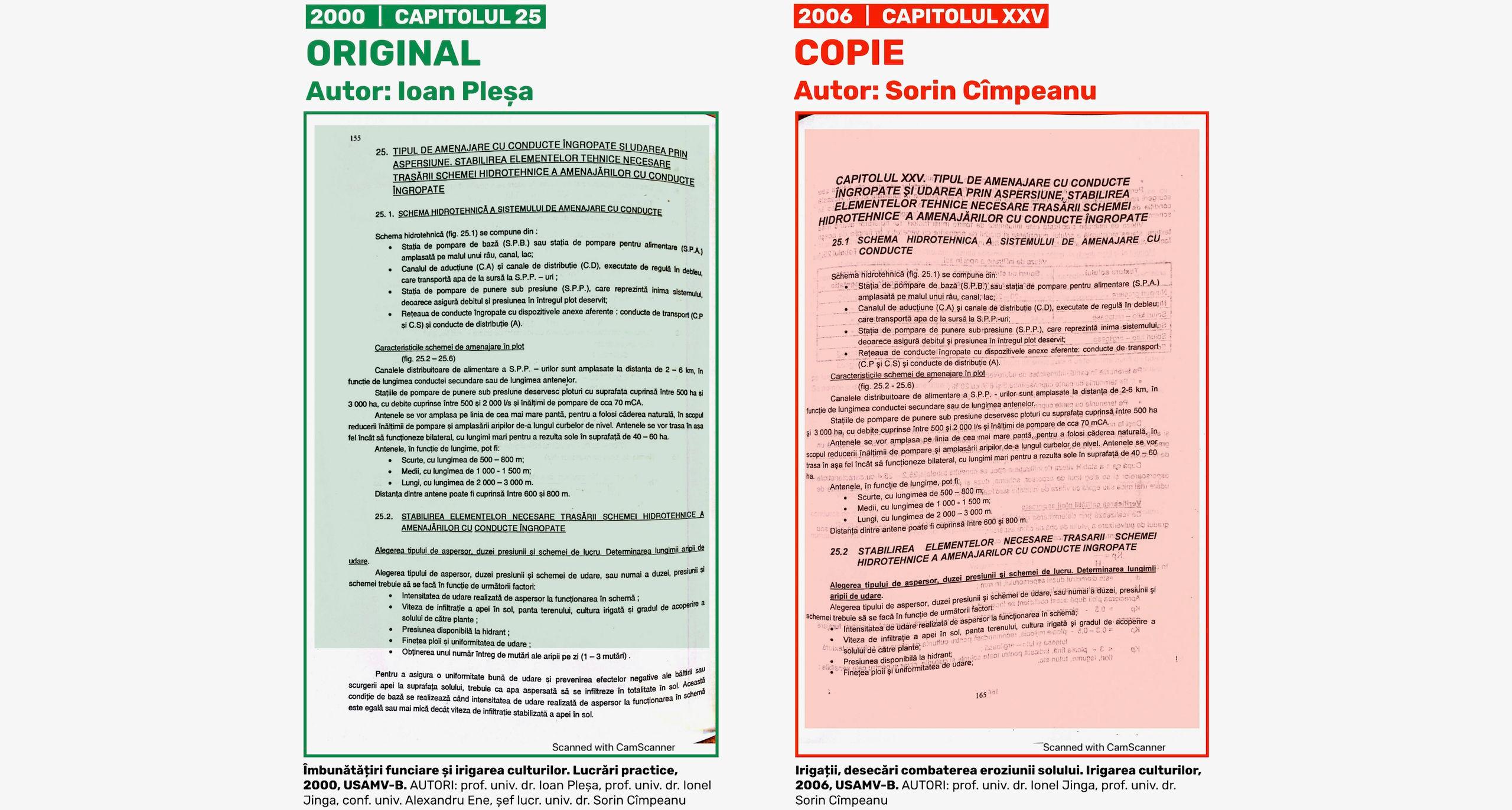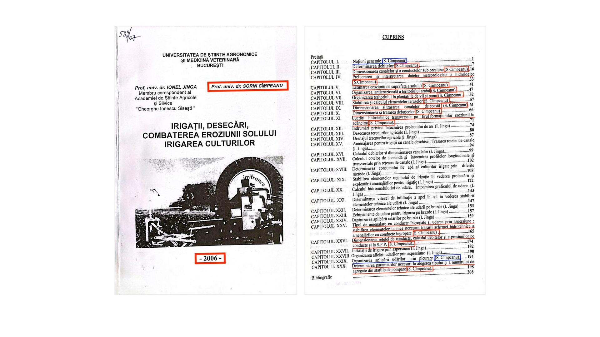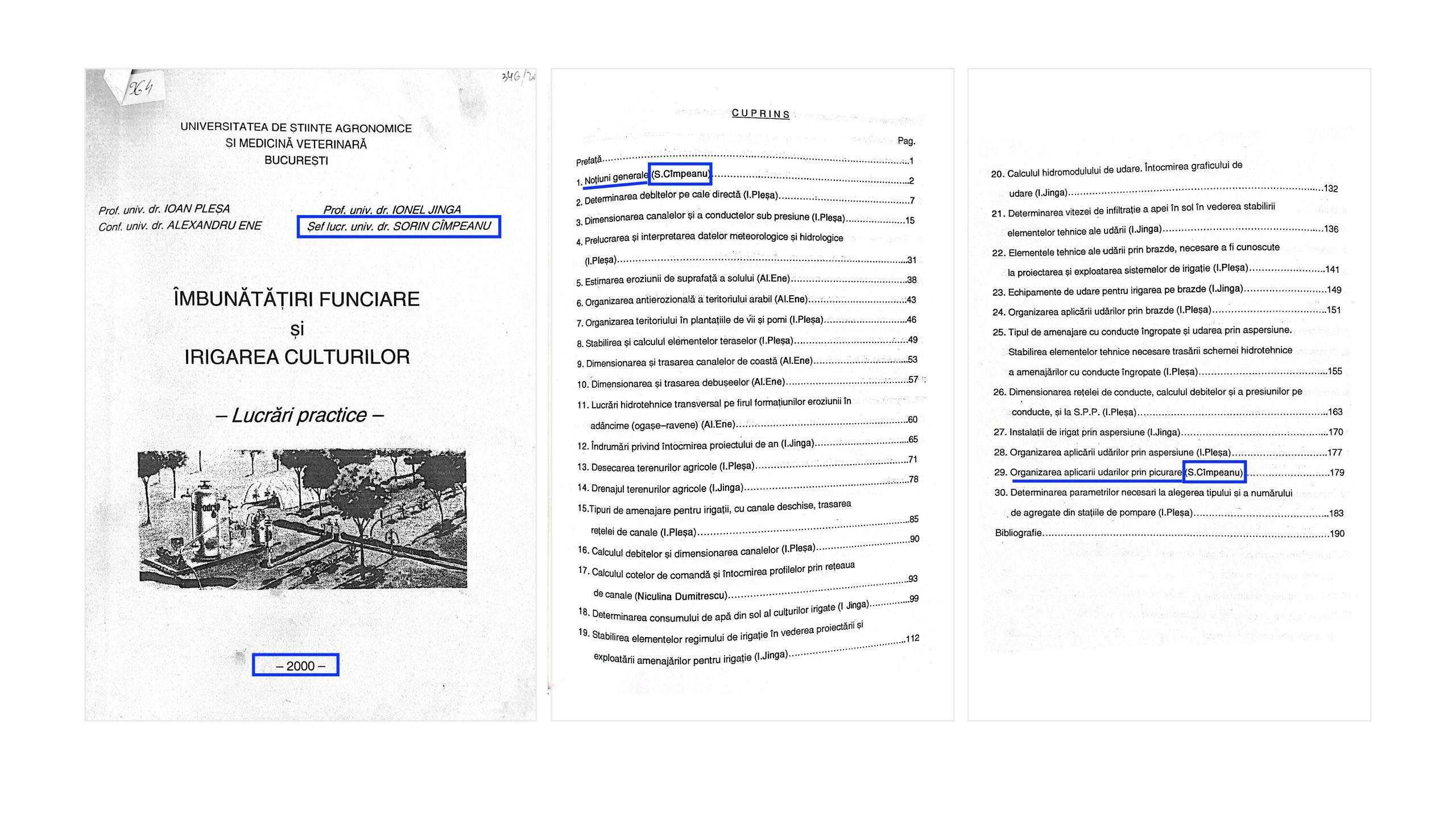 Al doilea. Profesorul universitar Sorin Cîmpeanu, rector suspendat al USAMV-B și ministru al Educației, a inclus în 2021 în propria listă oficială de lucrări științifice și cele două cursuri - Îmbunătățiri funciare și irigarea culturilor. Lucrări practice (2000) și Irigații, desecări combaterea eroziunii solului. Irigarea culturilor (2009) -, menționându-le în prima secțiune, intitulată „Cărți/capitole în cărți/manuale/materiale de studiu”.