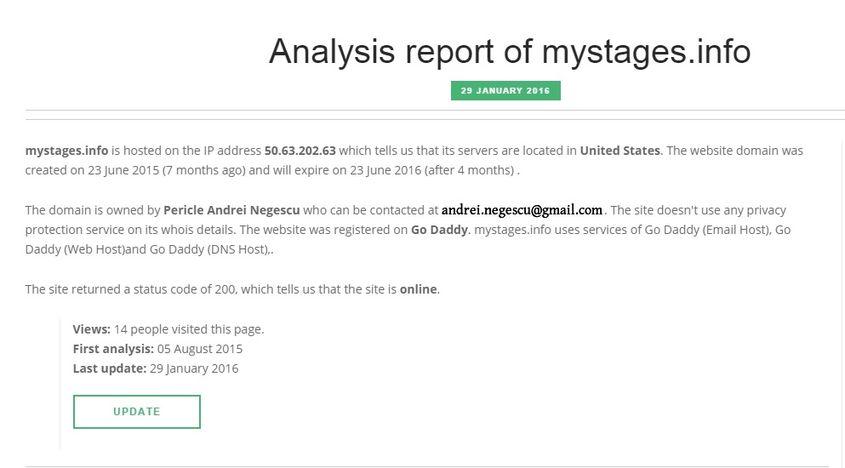 Unul dintre cele două domenii cumpărate de tânărul Negescu este Mystages.info.