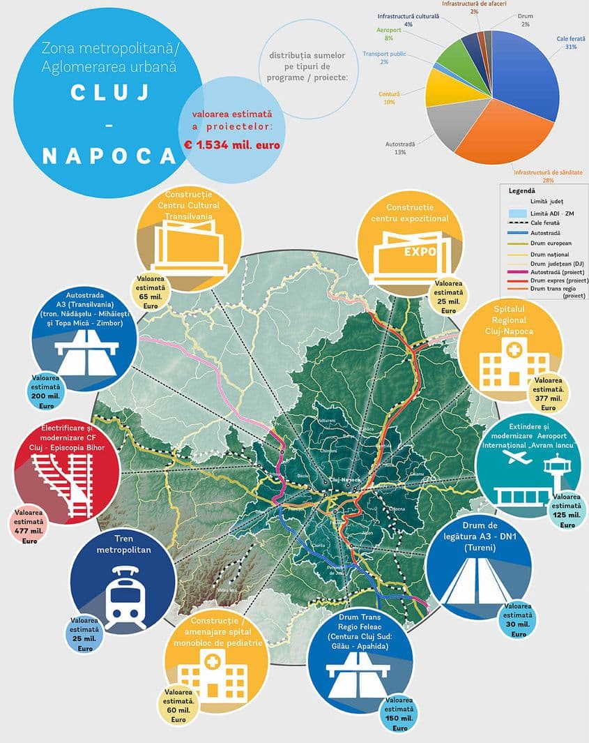 În cazul zonei metropolitane Cluj-Napoca, cele mai importante obiective de investiții sunt: