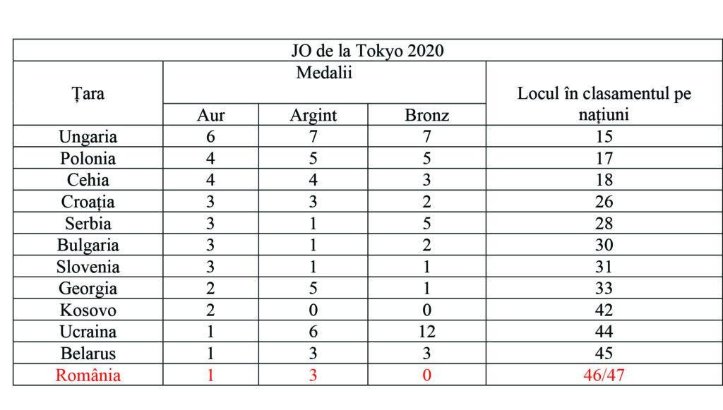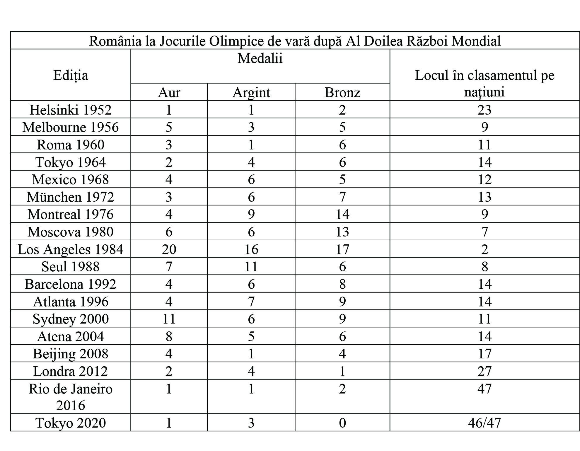 Între țările europene, socotind și Israelul, care sportiv concurează pe continentul nostru, România vine pe poziția a 28-a, în urma Sloveniei, Georgiei sau Kosovo. Pentru o imagine a locului real al României, trebuie să includem și sporturile de iarnă, cu Jocurile lor. Dacă facem acest exercițiu, ne depășesc clar și Slovacia, Austria sau Finlanda, care la Tokyo s-au clasat în urma noastră.