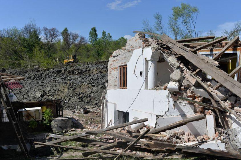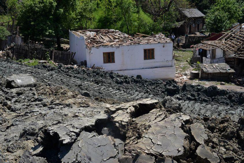 Locuitorii din Alunu recuperează ce mai pot recupera din casele afectate de alunecarea de pământ. Fotografii: Lucian Muntean