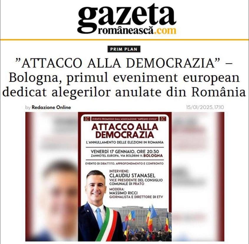 Claudiu Stănășel la evenimentul numit "Atacul la Democrație: Anularea Alegerilor în România” organizat la Bologna.