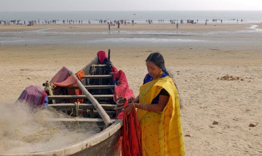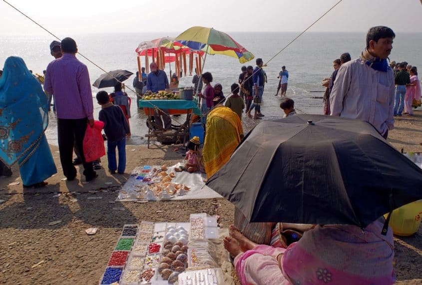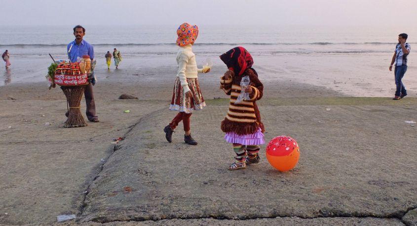 Privitori ca la teatru, mulți își petreceau ziua stând sub vaste copertine albe, pe scaune de plastic, cu ochii țintă la mare și atenți la ce se mai petrecea pe plajă: curajoși înotând, bărbați-copii îngropând în nisip un prieten, tineri romantici zâmbind la selfiuri cu Golful Bengal în fundal sau familii numeroase pozând sobre lângă căluți împopoțonați.