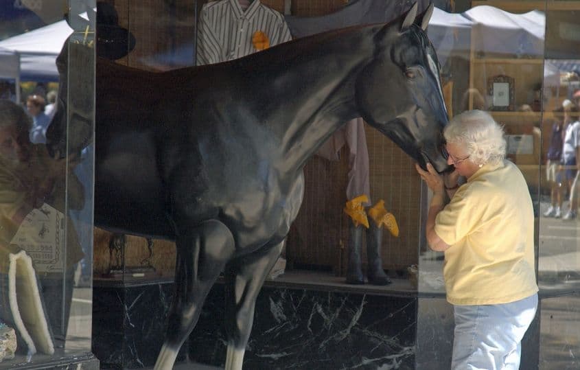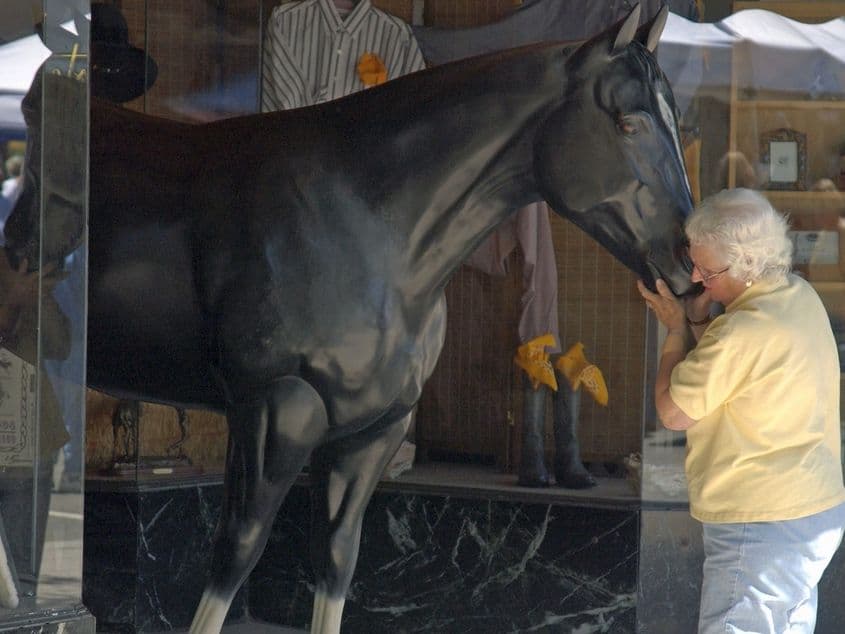 Înainte de a părăsi ușurat Pleasanton, ai putea, totuși, să-ți cumperi ceva deosebit, un souvenir pentru acasă, cum ar fi un armăsar negru, în mărime naturală.