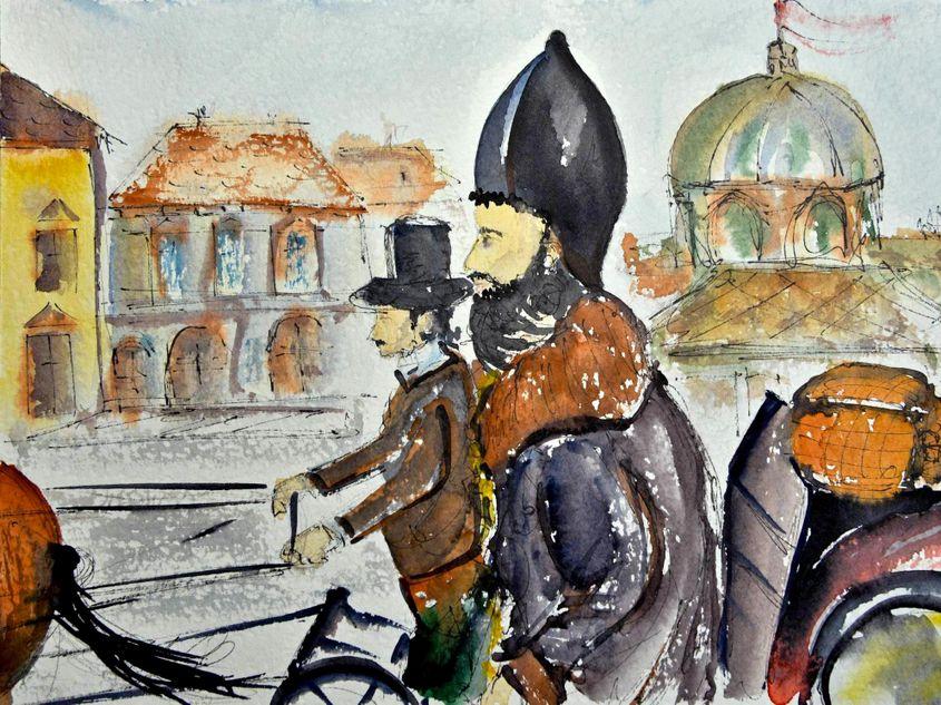 Dovedind un nesaț neostoit al observației, la pachet cu o poftă de a replica cele văzute, ciudatul boier îmbrăcat ridicol își bagă nasul peste tot și se minunează cu o imensă candoare de tot ce vede: măsoară cu pasul Palatul Dogilor din Veneția, se holbează cu orele la ceasurile cu figurine din diverse turle de biserici, ascultă gălăgia grozavă, dar altfel melodioasă, a unei turle având nouă clopote.