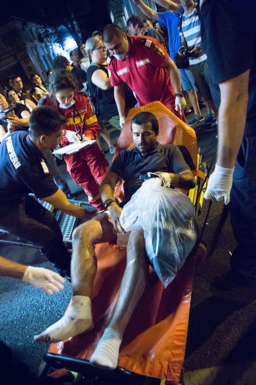 Doru Oprea (43 de ani), membru USR, a fost rănit serios, la picior, de o grenadă la mitingul Diasporei. A stat 9 zile în spital după care a descoperit că e infectat și cu bacteria Clostridium difficile.
