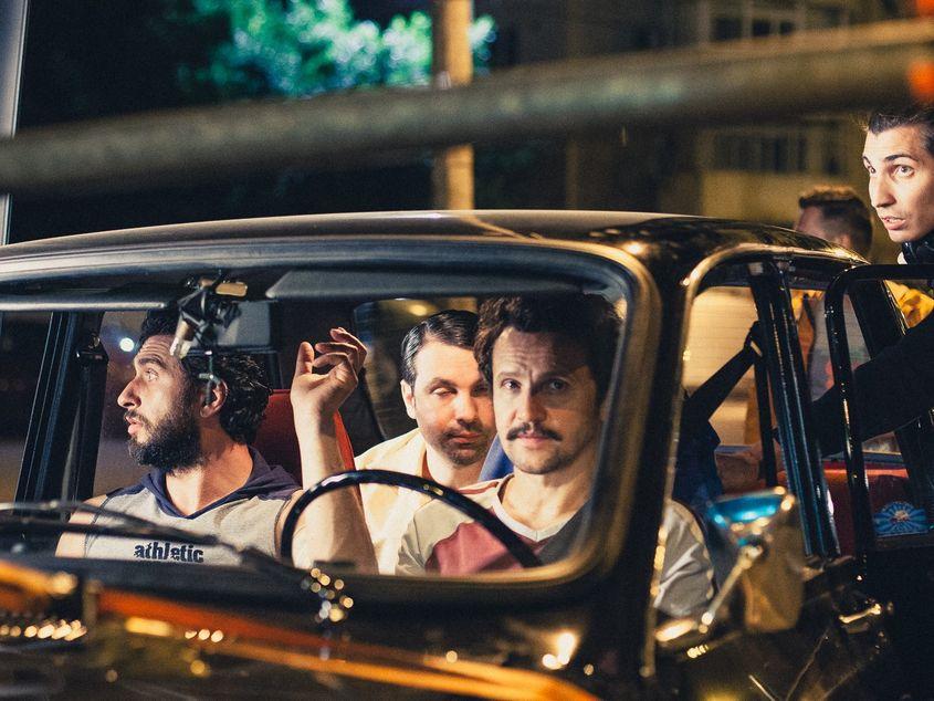 Negoescu şi cei trei actori protagonişti iau în derâdere, dar la modul auto-ironic, cadrul mizer din filmele româneşti.