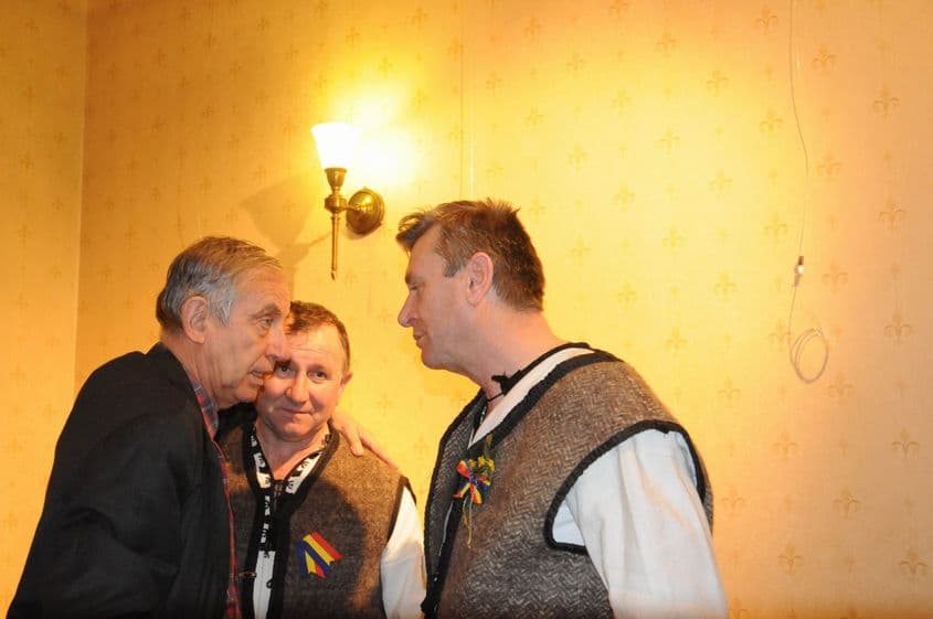 Îi recunosc: până acum câteva minute, au stat în sală, în haine „civile”. Acum, i se recomandă țanțoși unui reporter: sunt moți din Apuseni, veniți să recupereze „moștenirea lui Avram Iancu”.