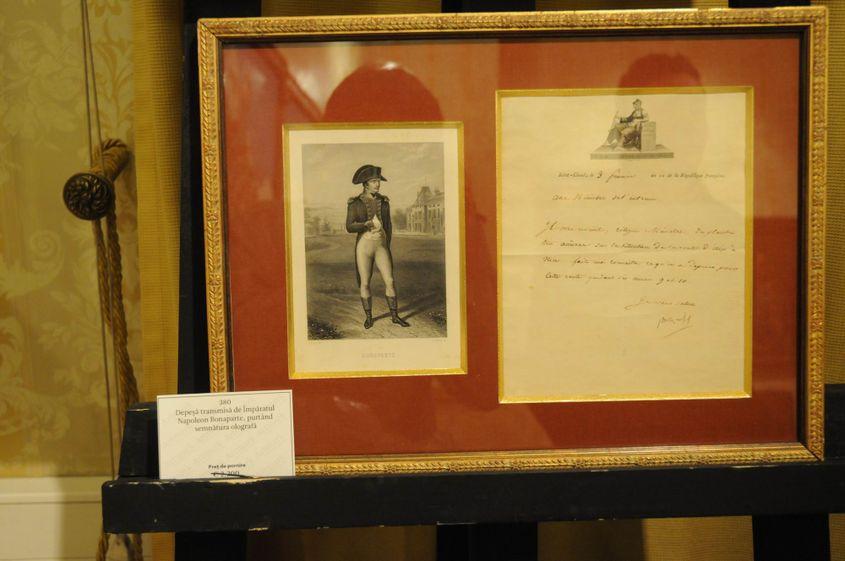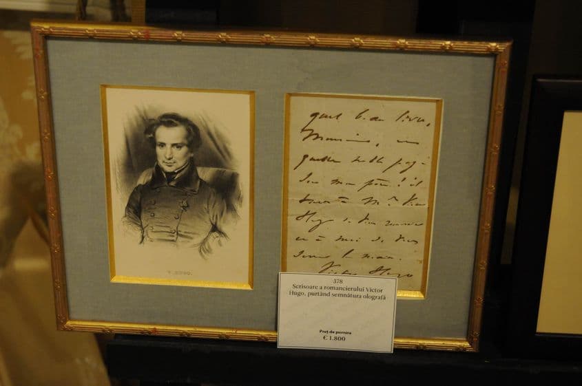 Pe un perete, la loc de cinste, o depeșă cu semnătura olografă a lui Napoleon Bonaparte și două scrisori, una semnată de Victor Hugo (foto), cealaltă, de Balzac.