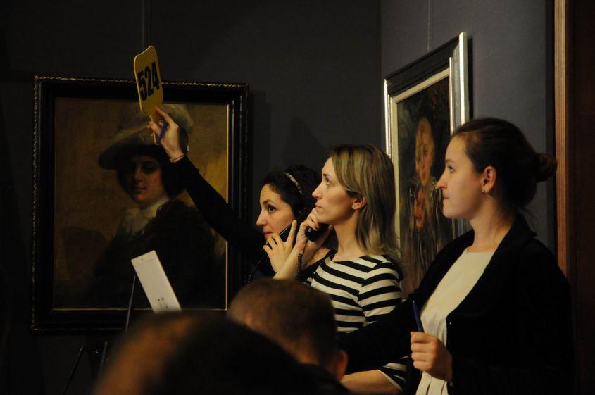 Puțini dintre cei prezenți – căci, între timp, Palatul s-a aglomerat – admiră însă drapelul. Cei mai mulți au venit pentru prima licitație a serii, „Maeștri ai portretului – de la Aman la Baba”.