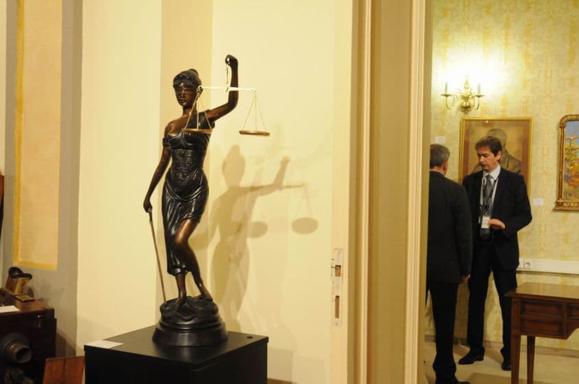 Vocea comisarului de licitație Adina Matei răsună până în camera unde se află drapelul lui Avram Iancu: „Pasul următor – 2000 de euro! Cine dă mai mult? Încă 500 de euro pentru globul pământesc din jad! Pasul următor – 2.500 de euro! Adjudecat!”