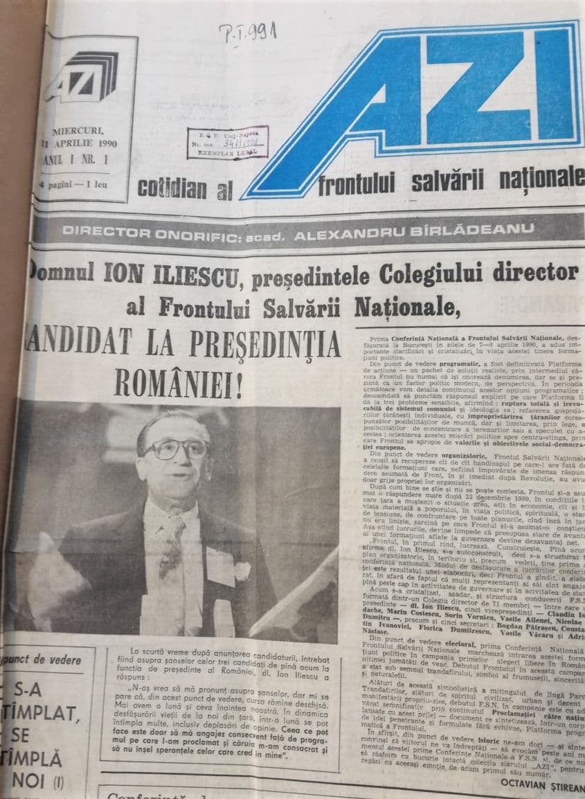 Pentru încălzire, iată câteva știri din primăvara lui 1990, așa cum au fost ele relatate în ziarul Azi.