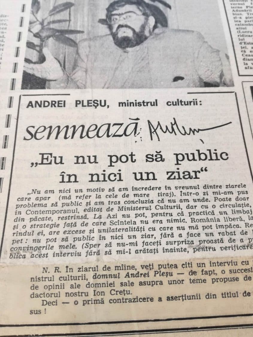 În aceeași perioadă, Andrei Pleșu se plângea de faptul că nicio publicație din România nu e frecventabilă. O făcea chiar în ziarul Azi, căruia îi oferise un interviu: ”Nu am nici un motiv să am încredere în vreunul dintre ziarele care apar (mă refer la cele de mare tiraj). Într-o zi mi-am pus problema să public și mi-am dat seama că nu am unde. Poate doar în Contemporanul, editat de Ministerul Culturii, dar cu o circulație, din păcate, restrânsă.