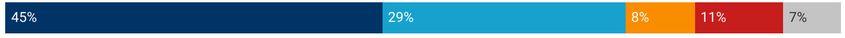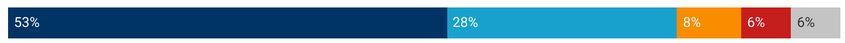 De la stânga la dreapta, vezi: susținere în foarte mare măsură pentru război (albastru închis); susținere în oarecare măsură (albastru deschis); opoziție în mică măsură (portocaliu) sau mare măsură (roșu); oameni care refuză să răspundă (gri).