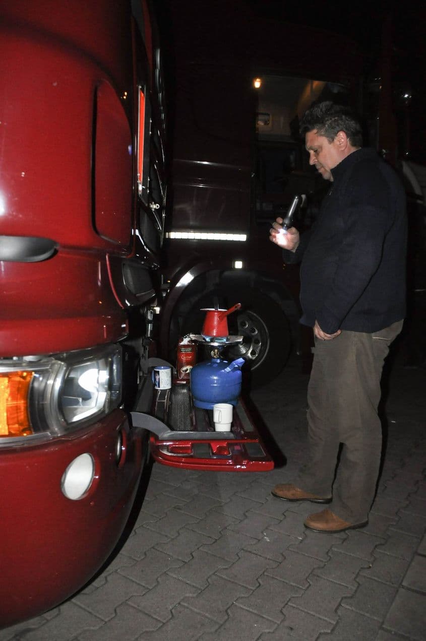 – Am avut pe dracu’! Ce sentiment? Eu doar mă urc la volan și duc încărcătura unde trebuie dusă. Economie fac patronii pe spinarea noastră, nu noi. Luăm pe cartea de muncă salariul minim pe economie, iar restul luăm din diurne, din plata la suta de kilometri parcurși. Într-o lună bună, dacă prinzi două transporturi la mare distanță, cum e ăsta, poți să iei o mie, o mie și ceva de euro. Plătești rata la casă, rata la mașină, îi mai dai copilului pentru școală, mai cheltuiești în deplasare, mai plătești o amendă de circulație, mănânci, îți iei ceva de îmbrăcat și cam ăștia-s banii.