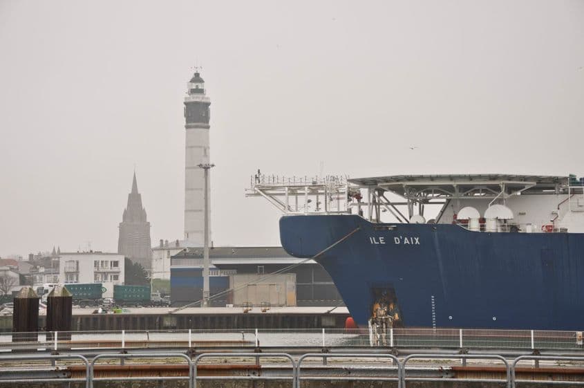 Când se dă semnalul de îmbarcare, camioanele încep să intre unul câte unul în burta monstrului: un feribot înalt cât un bloc cu zece etaje, cu trei punți de îmbarcare. Căpcănul înghite uriașele camioane ca pe găluște.