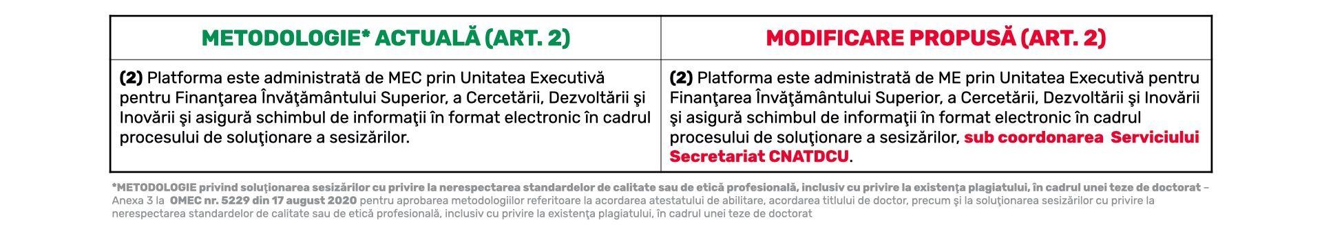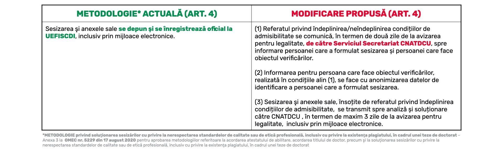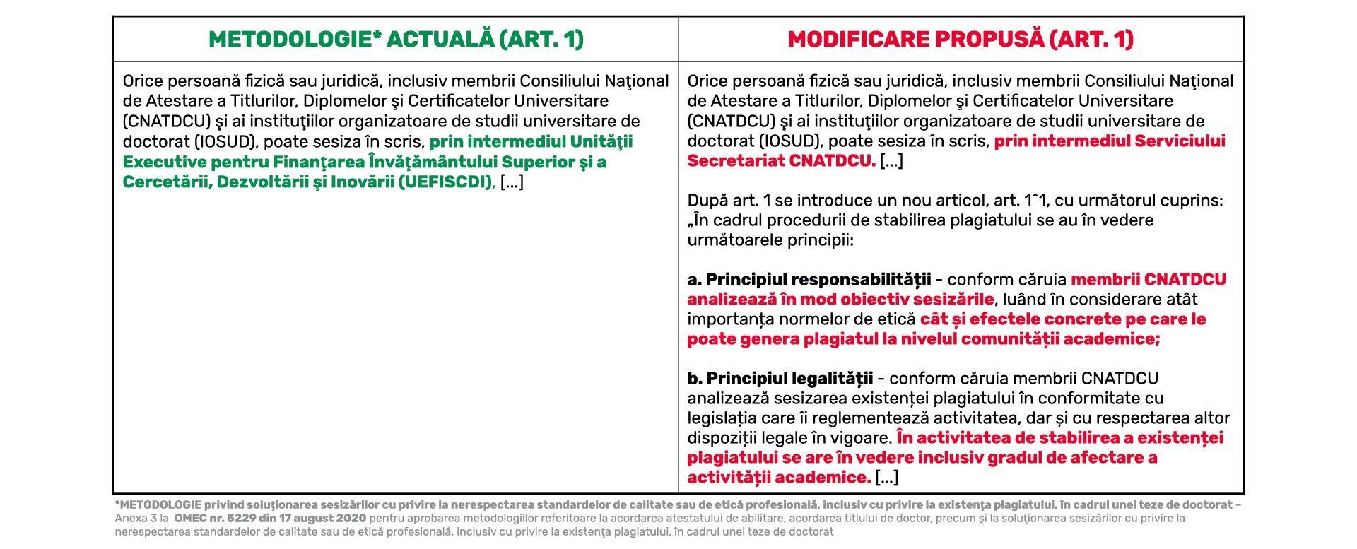 Printre aceste obiecții se numără cea referitoare la eliminarea UEFISCDI din procedura de înregistrare a unei sesizări de plagiat și înlocuirea acestei instituții cu nou înființatul Serviciu Secretariat CNATDCU.