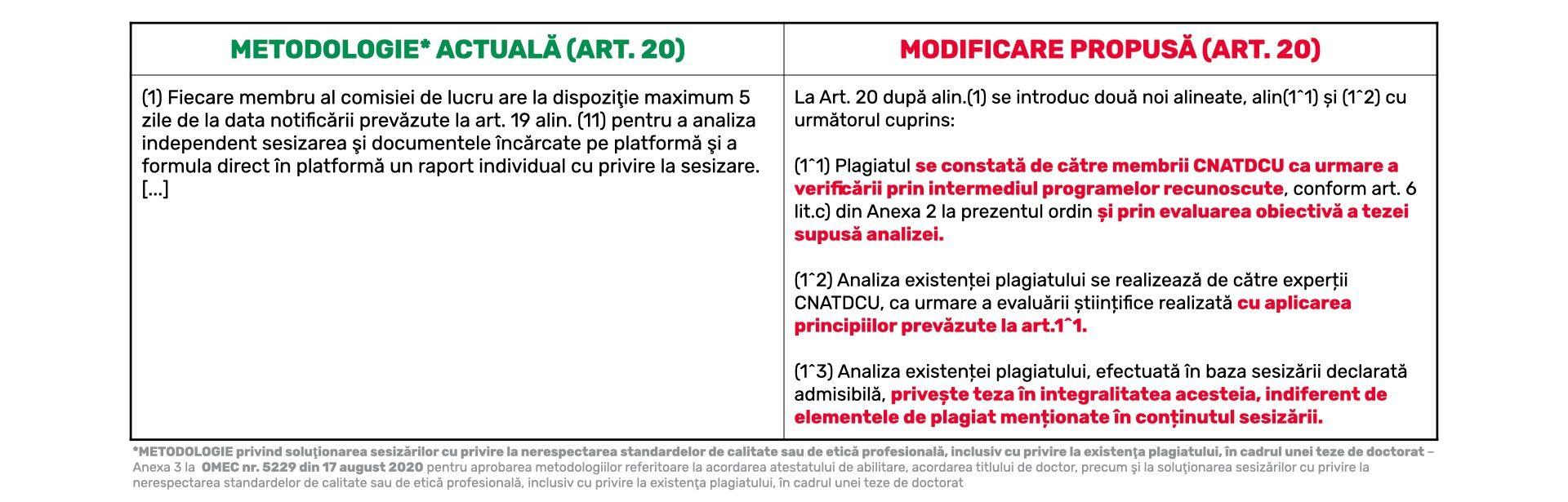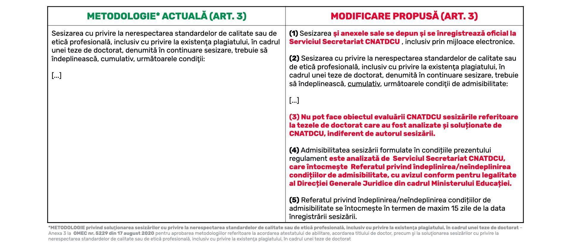 De departe, cele mai consistente modificări, dar și cele mai perfide, sunt aduse Metodologiei de soluționare a sesizărilor de plagiat în tezele de doctorat.