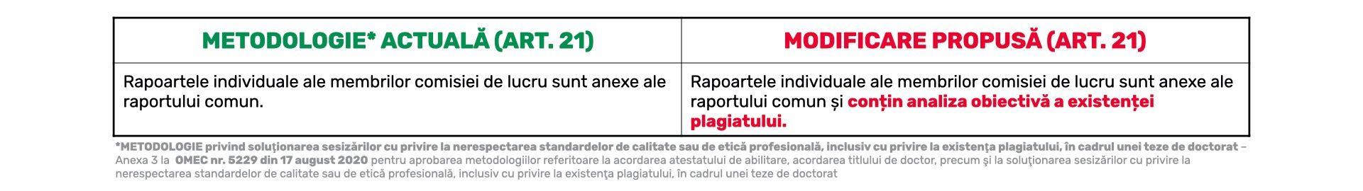 În plus, în paragraful care se referă la faptul că „plagiatul se constată de către membrii CNATDCU ca urmare a verificării prin intermediul programelor recunoscute”, mai este adăugată o completare care se referă la „evaluarea obiectivă a tezei supusă analizei”.