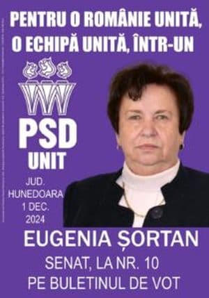 Aceeași poveste e valabilă și pentru colega lui Iosif Ovidiu-Gal din PSDU Hunedoara, Eugenia Șortan - în 2020, aceasta candida pentru funcția de senator din partea AUR. 4 ani mai târziu, femeia a candidat pentru aceeași funcție din partea formațiunii conduse de Oana Crețu.