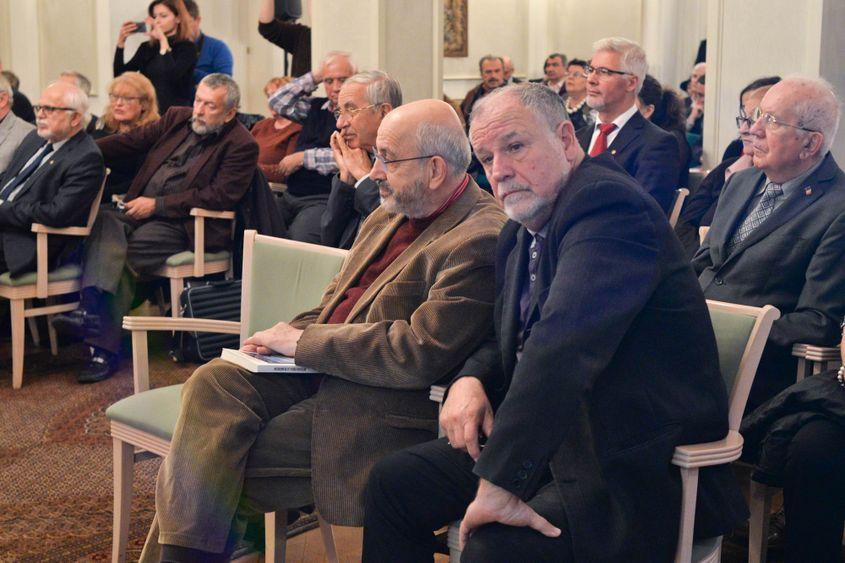 În primul rând al audienţei, generalul în rezervă Mircea Chelaru, fost șef al Statului Major al Armatei, ascultă cu atenție.