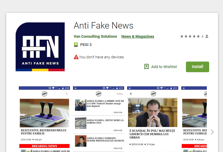 Vasile Andrei Nicolae a negat orice legătură cu PSD. În plus, susține că firma pe care o administrează nu a realizat niciun app pentru antifakenews.ro, deși această informație apare pe Google Play.