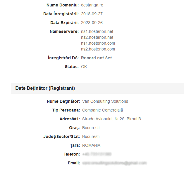 Nicolae Răzvan Ciobanu este, reamintim, proprietarul din acte al firmei Van Consulting Solutions, care a înregistrat domeniul destanga.ro.