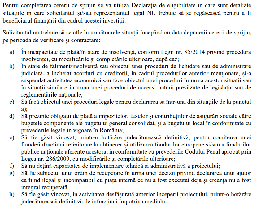 Afirmația ministerului este contrazisă de ghidul programului de împădurire din PNRR, unde se spune că solicitantul (respectiv reprezentantul legal al companiei care aplică pentru finanțare) nu trebuie să „prezinte obligații de plată a impozitelor, taxelor și contribuțiilor de asigurări sociale către bugetele componente ale bugetului general consolidat, și a bugetului local”.