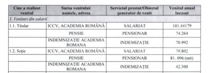 La un calcul simplu, Cătălin Zamfir a câștigat, lunar, 8.453 de lei din salariul de la institut, 6.189 de lei din pensie, plus 5.916 lei din indemnizația de la Academia Română, un total de 20.558 de lei. Soția sa a mai contribuit la bugetul familiei cu aproape 17.000 de lei pe lună, din aceleași surse (salariu institut+pensie+indemnizație AR).