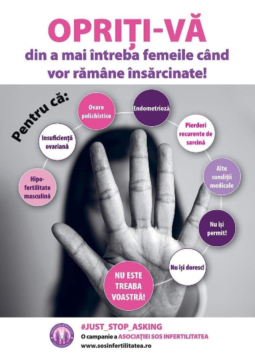 „Infertilitatea este o boală, mai ales că se soldează cu niște complicații. De exemplu, stresul pe care îl induce infertilitatea este un stres cronic de intensitate destul de mare, care a fost comparat cu stresul pe care îl produce diagnosticul de cancer”, spune ea.