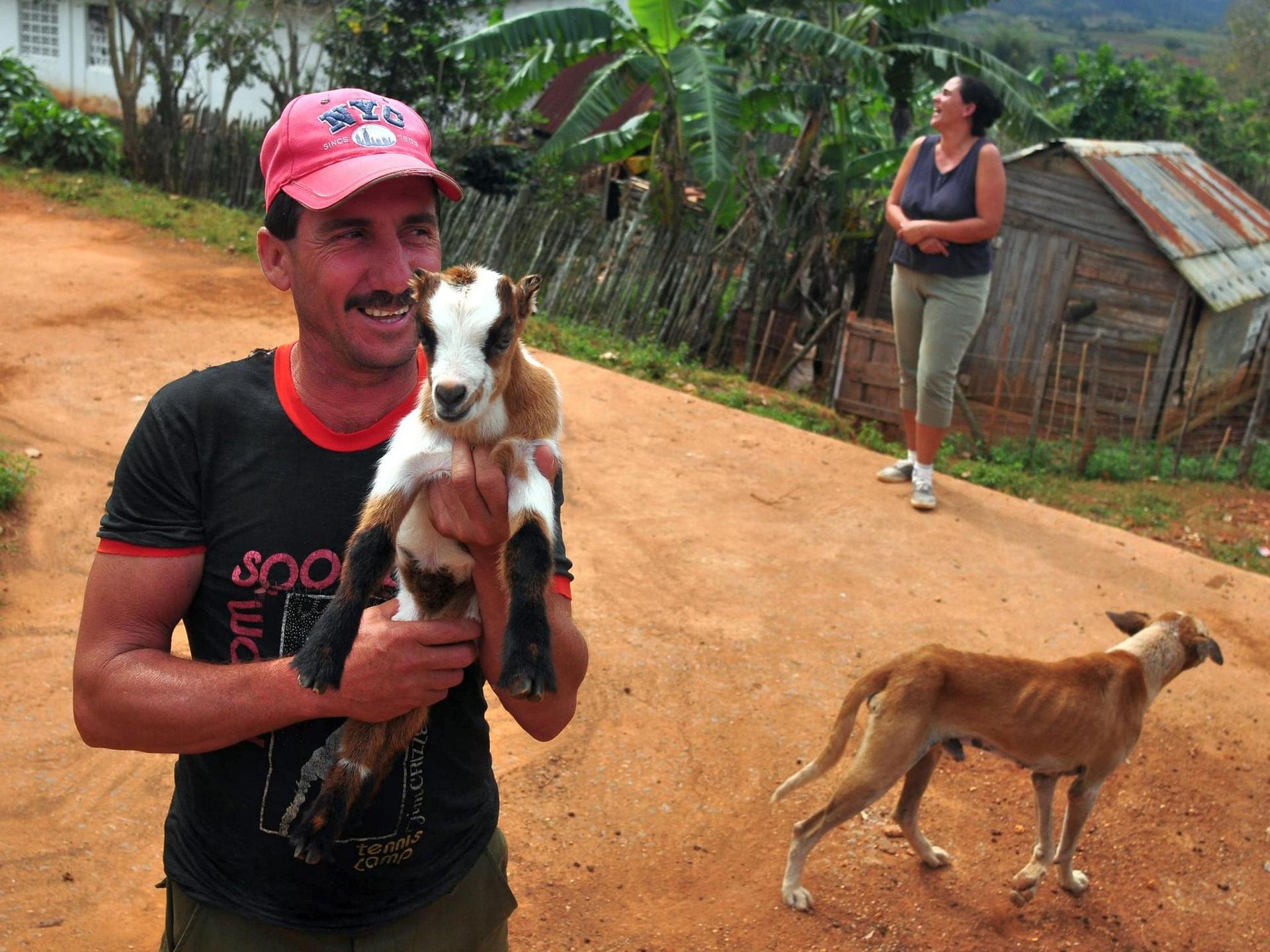 Frumusețea tăcută și blândă a decorului luxuriant te îndemna să pășești pe cărăruile dintre parcele cu smerenie, să faci doar mișcări atente, moi. Vegetația era un spectacol, la fel peisajul cu câmpurile aluviale presărate de acele formațiuni calcaroase tipice zonei denumite mogotes, delușoare îndrăznețe și ascuțite la vârf, aidoma unor cușme de țăran din Ardeal înălțându-se ici-colo din pământul roșiatic. De cafea nu am dat, în schimb am descoperit câmpuri de diverse culturi, în speță cartofi dulci, trestie de zahăr și tutun. Nuanțele diferite de verde ale parcelelor delimitate de drumuri agricole creau un efect aparte, iar fundalul era asigurat de palmieri în vânt și tufe de plante grase.