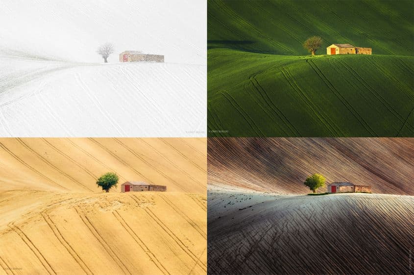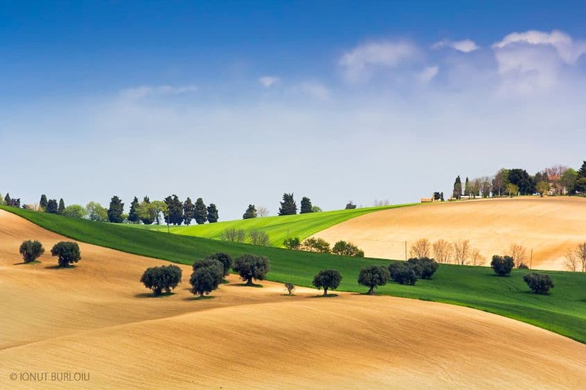 De atunci, tot încerc să surprind formele, contrastele, textúrile și culorile dealurilor din zona Marche.