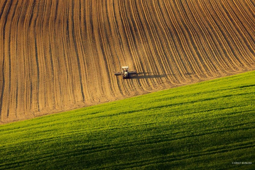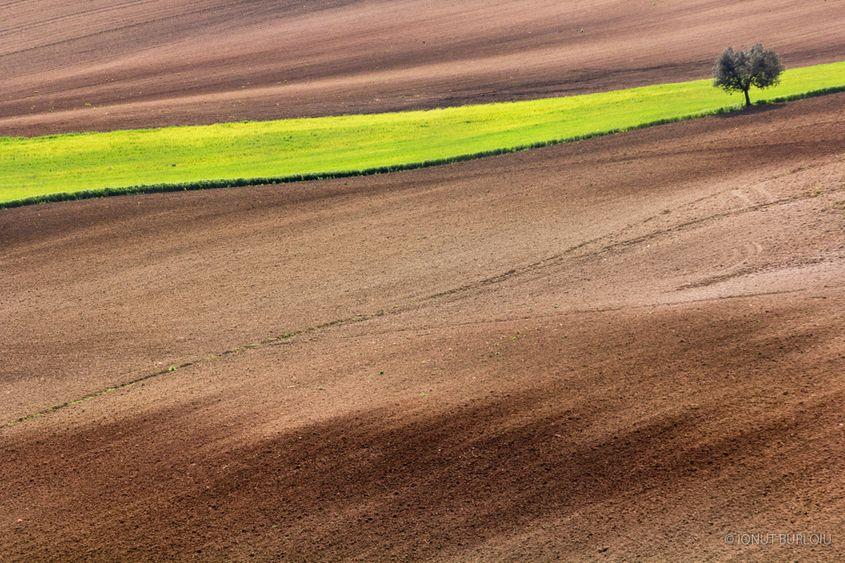 Descoperisem locul înainte de a face acest cadru, dar am așteptat până când pământul arat a căpătat textura pe care mi-o imaginam și am declanșat atunci când lumina a produs contrastul maxim”, explică Ionuț.
