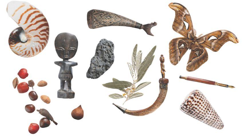 Avem o rocă vulcanică din Islanda, pentru care am tras un frig crunt, ca să o iau de la poalele unui ghețar. Avem semințe din Guiana Franceză, niște semințe de arbori tropicali, de liane, de palmieri din care se face gem, o sămânță de mangrovă. Avem o statuetă africană din Kenya, aducătoare de fertilitate. De obicei, cuplurile își pun astfel de statuete sub pat, ca să le aducă copii mulți, nu că n-ar funcționa și altfel.