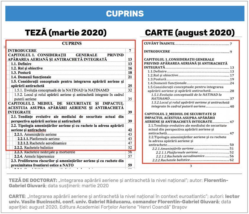 Bucinschi și Răducanu, care își însușesc conținutul tezei de doctorat a lui Florentin-Gabriel Giuvară, comit plagiat în acest caz.