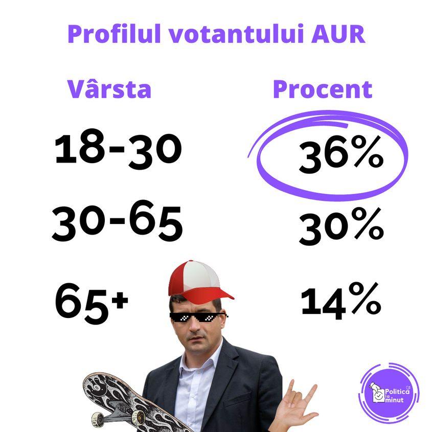 În România, un sondaj Avangarde de la începutul anului arată că segmentul de vârstă 18 - 30 de ani reprezintă 36% din electoratul AUR, abia apoi urmat de segmentul românilor de vârstă mijlocie: 30%. Doar 14% dintre susținătorii partidului au peste 65 de ani.