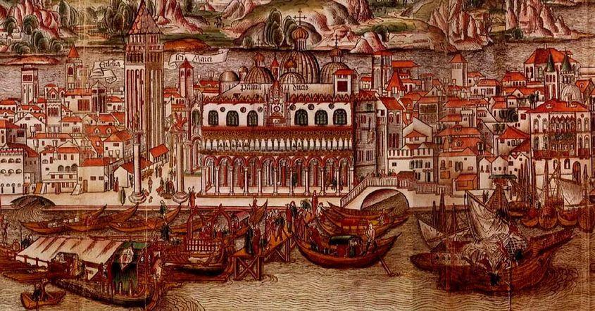 V.D.: Evident, comerțul este sistemul circulator al continentului iar dezvoltarea orașelor italiene, și nu numai, accelerează acest fenomen al călătoriilor. Acum câțiva ani am vizitat Veneția în februarie, în mod intenționat, ca să o am (aproape) doar pentru mine. Dar tu ne explici că adevărata Veneție trebuie să fie plină de oameni, de călători și de turiști, căci asta a definit-o mereu. Hai să vorbim despre Veneția medievală, când era un fel de aeroport Heathrow ori Doha.