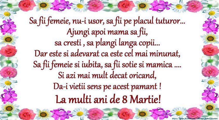 Mâine e o nouă zi. Peste un an, vine iar 8 Martie. Sacul cu sărbători inventate și cu manifestațiuni de formă, superficiale, inutile, e plin. De-ajuns pentru o omenire întreagă, din păcate.”