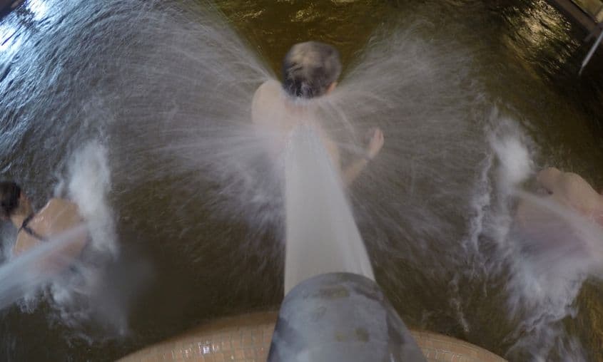 Restul zac în bazine cu temperaturi diferite, adaptate diverselor scheme de tratament. Mulți invită jeturile de apă să le facă masaj pe spate sau ceafă.