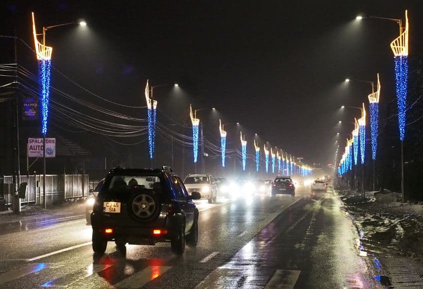 În timp ce, în lumea normală a bătrânei Europe, primarii se ocupă de aspecte practice, cum ar fi montarea de marcaje rezonatoare înaintea trecerilor de pietoni sau amenajarea unei piste de biciclete paralele cu șoseaua, la noi primarii se ocupă de aspecte estetice, întrecându-se în instalații luminoase dintre cele mai fanteziste: felinare cu sclipici, copaci îmbrăcați în lumini albastre, stâlpi transformați în torțe bicolore, steluțe și fulgi de nea clipind intermitent deasupra șoselei, pomi de Crăciun gemând de false cadouri sau moși în sănii de reni realizați integral din leduri roșii.