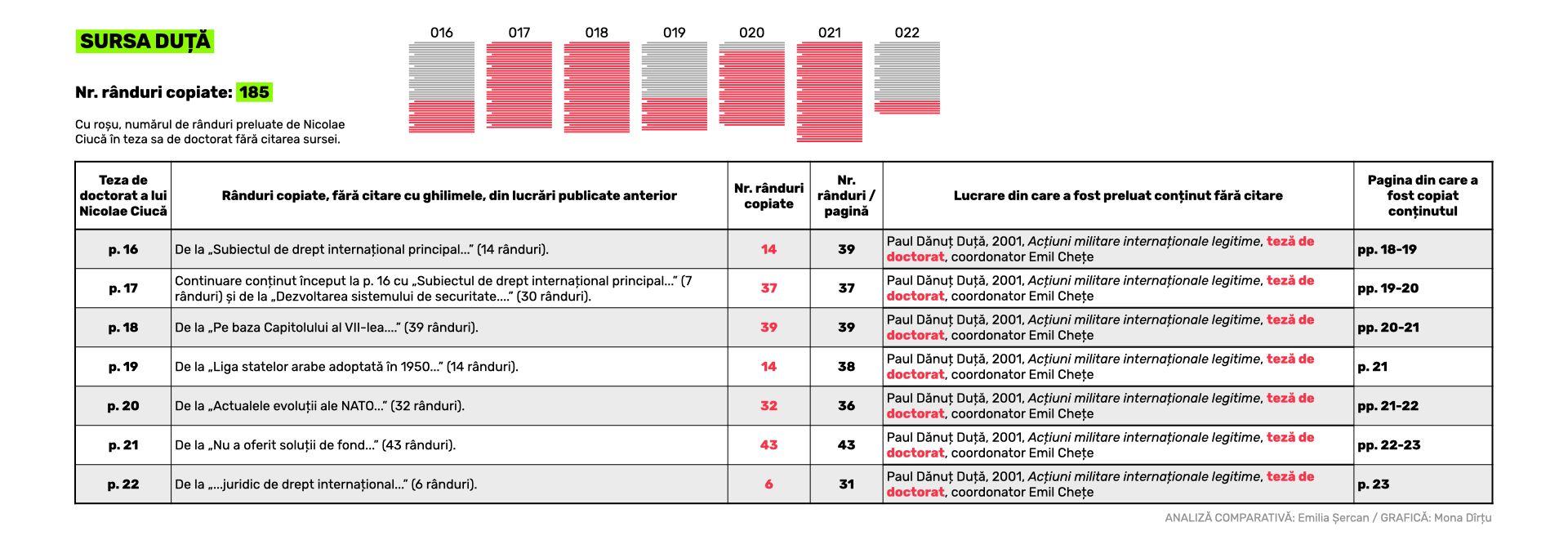 Chețe nu observă, în schimb, că Ciucă a plagiat 185 de rânduri din teza pe care un alt doctorand al său, Paul Dănuț Duță, o susținuse cu doar doi ani înainte, în 2001. Teza lui Nicolae Ciucă include conținut plagiat din lucrarea lui Duță în 7 pagini, dintre care 3 sunt plagiate de la primul până la ultimul rând, inclusiv notele de subsol.