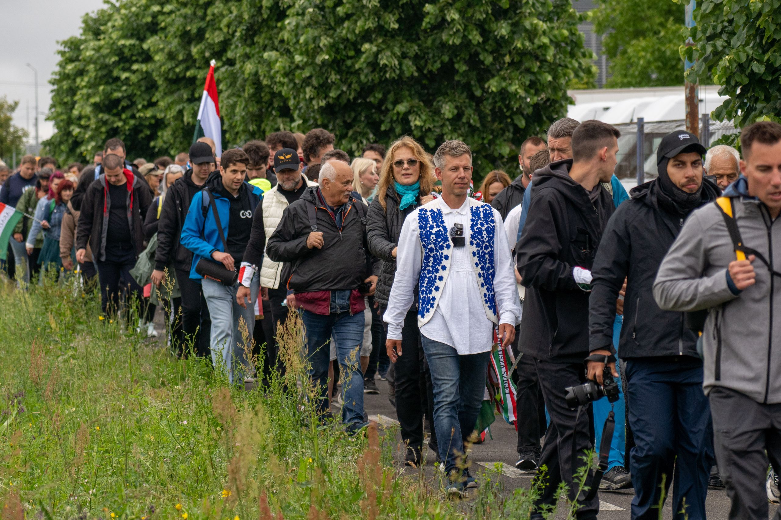 Liderul opoziţiei din Ungaria Péter Magyar a trecut graniţa în România, la Borș dupa 11 zile si 300km parcursi. El a protestat față de ceea ce a numit trădarea etnicilor maghiari de către Viktor Orban, care l-a susținut la prezidențiale pe naționalistul George Simion. Foto: Raul Ștef