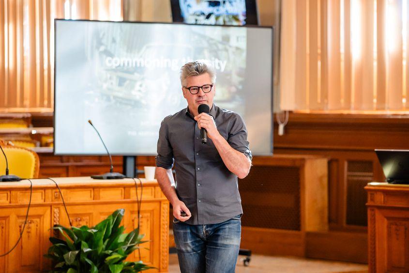 Pascal Gielen este sociolog și profesor, vine din Belgia și e cunoscut pentru cercetările sale în domeniul artei, culturii și al politicilor creative. El explorează cum artele și cultura influențează societatea și a inventat un concept pe cât de simplu, pe atât de sofisticat în fragilitatea lui: acela de spațiu semi-public. Gielen spune că aceste spații ajută o comunitate să lupte cu extremismul, cu alienarea și cu gentrificarea. Spune că în ele, oameni cu backgrounduri sociale diverse pot crea modele alternative de organizare socială și urbană bazate pe colaborare și sustenabilitate.