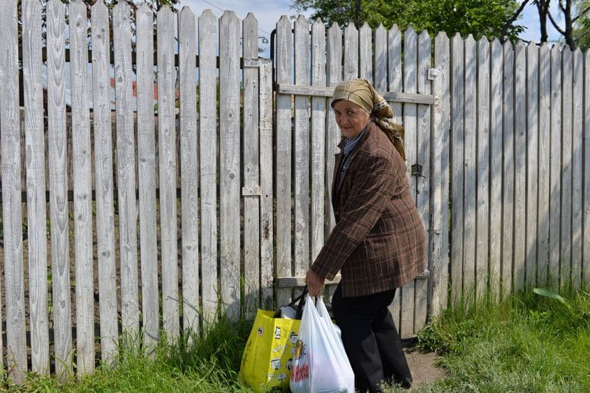 Ajungem la casa femeii. Își ia sacoșele și intră în curte: „Toți sunt la fel. Toți fură.”