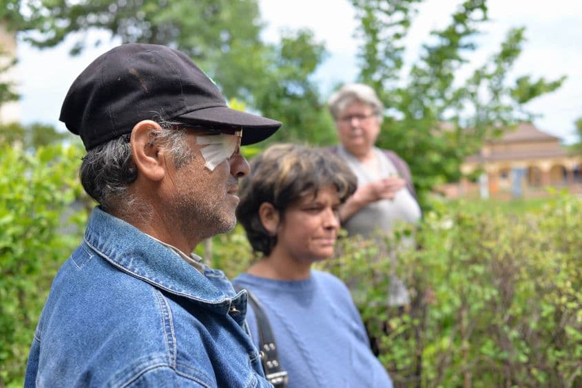 Bărbatul vede doar cu un ochi – celălalt e acoperit de un pansament. „Mi-a sărit un șpan în ochi”, ne spune, neîntrebat.
