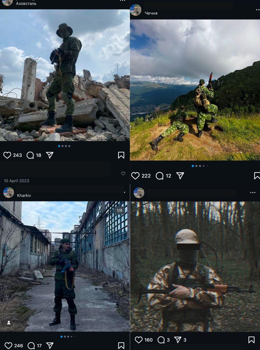 Un tânăr român se pozează cu arme și uniformă militară, care imită echipamentul și simbolurile purtate de mercenarii ruși Wagner. Mai mult, *Vlad își face check-in în zone de conflict din Ucraina, precum Azot, Azovstal, Bahmut sau Harkov. I se răspunde în comentarii, pe Instagram, cu „Slava Rusia.”